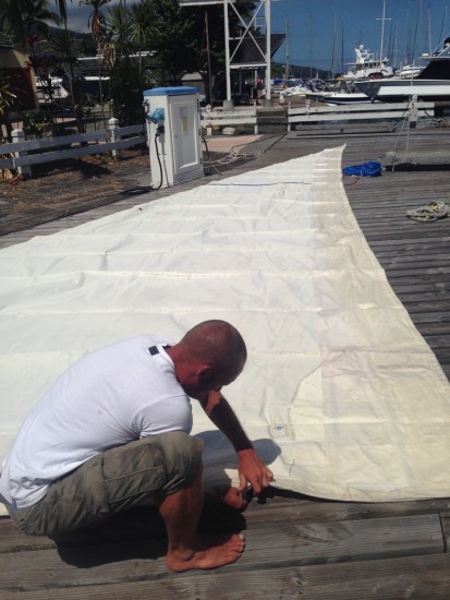 - Sail repairs; changing all worn out threads, repair small damages