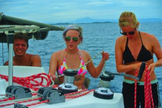 Tacking, jibing, reefing, anchoring, hiving-to and man-overboard exercises is some of the technics they now master pretty good and in some cases- perfect. Not bad considering almost all of them were beginners 30 days ago!