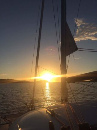 Not everyone was beginners when they came onboard. Bay Dreamers old crew-mate Simon has done more than 5000 nm with us and besides feeding us with first-class rum he also knows his way around the boat. Welcome back Simon…..