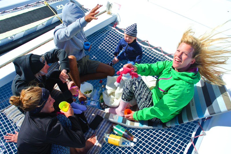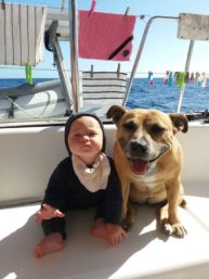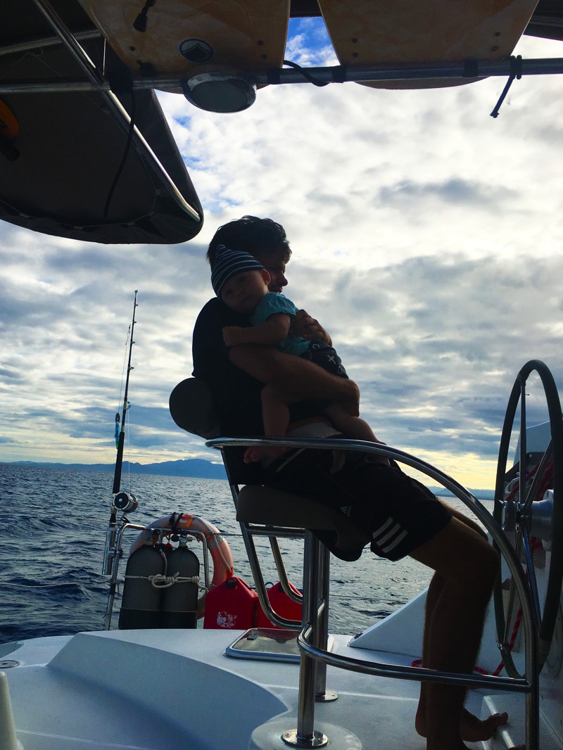 To push trough 35 to 40 knots of upwind with swells up to 7 meters wasn’t an option with a rookie-crew and a 7 months old baby so we had to come up with an alternative plan.