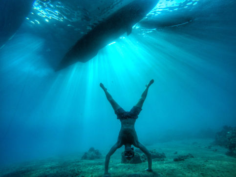 Surfing has also become a bit of a craze for some of the crew of both Atlas and Bay Dreamer. All shapes and forms have been trialled, either on a surfboard, stand up paddle board or kite, behind a wave or behind the dingy (or for the more extreme, in the dingy and up a wave). Watch out for sea urchins though, for those creatures can strike with a malice unknown to demons and you don’t want to end up having mini foot and butt cheek surgeries for the following days (Danny and Will).