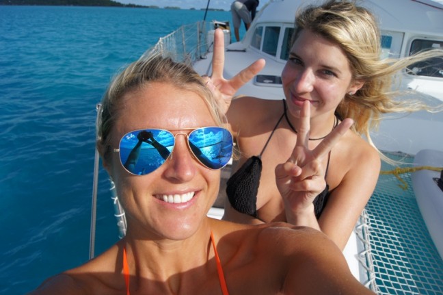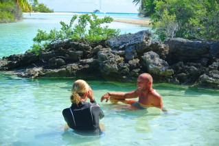 Our small dive compressor had to work hard during this trip and all of our guests went “down-under” inside Rangiroas blue lagoon. Sofia and Mikaela had never before been diving and it was a pleasure to see them among sharks and stingrays for their first time! Sabrina and Geno that has been diving a lot before went out on their own little underwater mission!