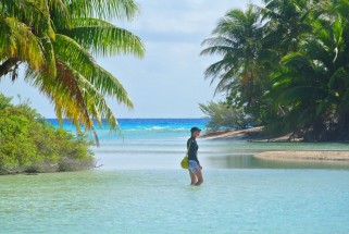 Mikaela, Sofia and Anna poosing on Rangiroa
