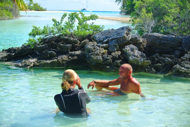 Sabrina and Daniel chilling out on one of Rangiroas many islands
