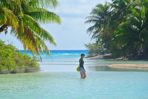 Mikaela, Sofia and Anna poosing on Rangiroa