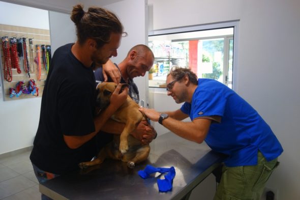 Vera got her self into a nasty dog fight here on Bora Bora a couple of days ago and if it was not for Bay Dreamers new hero- Will, she would most likely be dead by now! I was not there when it happened but apparently Will protected Vera with his own body and got bitten twice by the 3 attacking pit-bulls thanks A LOT Will!