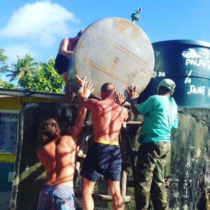 Helping Bill with a watertank