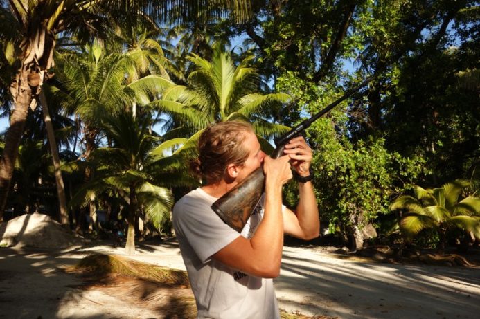 Our one and only Will has not only hurt himself 200 times,he is also by far the “onboard- spearfishing-guru”. He managed to get a Giant Trevelli named Jimmy with his spear during our stay in Aitutaki- old Jimmy was a big guy and he probably had a wight around 45 kilos?!?!