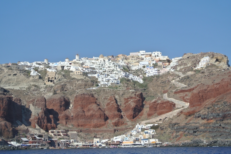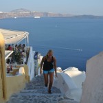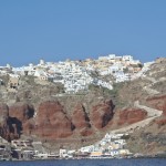 I have never been on Santorini before and I was amazed to see the place- it´s one of the most beautiful places I have ever seen. The village where we are now is placed up high on cliffs at least 100-150 meters above sea level and the narrow paths up from where we are ”parked” the boat was trafficked by Donkeys who was taking tourists on their backs up from the cruise ships. NO- we didn´t ride on a donkey- we used our ”running” legs- and it was hard J