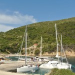 Because of the high depth in the bay just outside the cave, we decides to stay the night tied up along the pier of a very small harbor in the next bay just 2 minutes away.